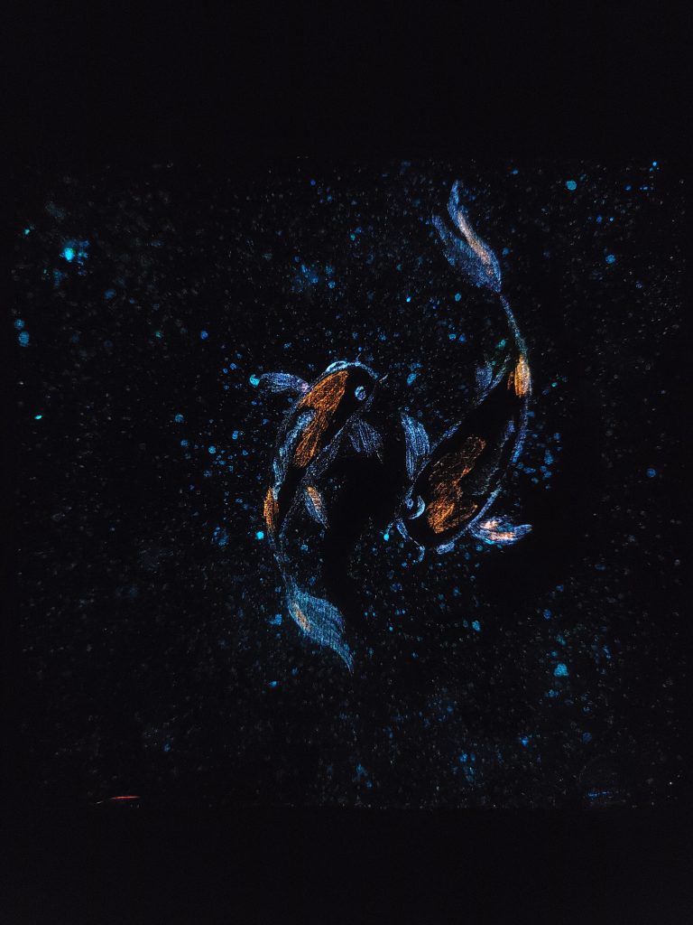 L’œuvre devant vous s’illumine dans la nuit, n’hésitez pas à allumer et éteindre la lumière LED pour apercevoir quelques détails.