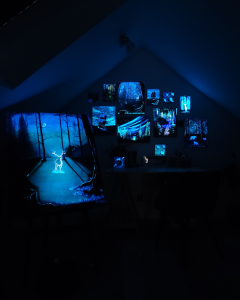 Découvrez mon univers composé d’œuvres uniques qui évoluent dans l’obscurité grâce à l’utilisation de peinture phosphorescente.